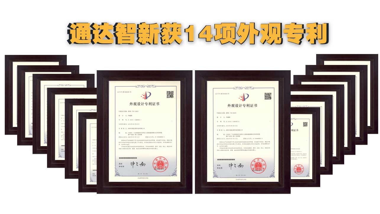 2020年,國家知識產(chǎn)權(quán)局正式批復(fù)了通達(dá)智申請的14項外觀專利,我們通達(dá)智在2019年努力終于初見成效。